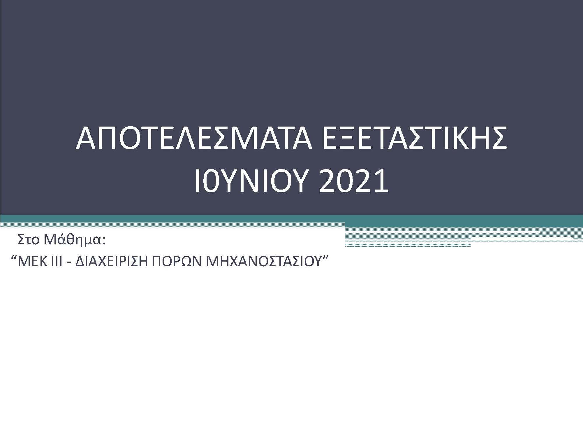 ΑΠΟΤΕΛΕΣΜΑΤΑ ΕΞΕΤΑΣΤΙΚΗΣ ΙΟΥΝΙΟΥ 2021 στο μάθημα: ΜΕΚ ΙΙΙ - ΔΙΑΧΕΙΡΙΣΗ ΠΟΡΩΝ ΜΗΧΑΝΟΣΤΑΣΙΟΥ