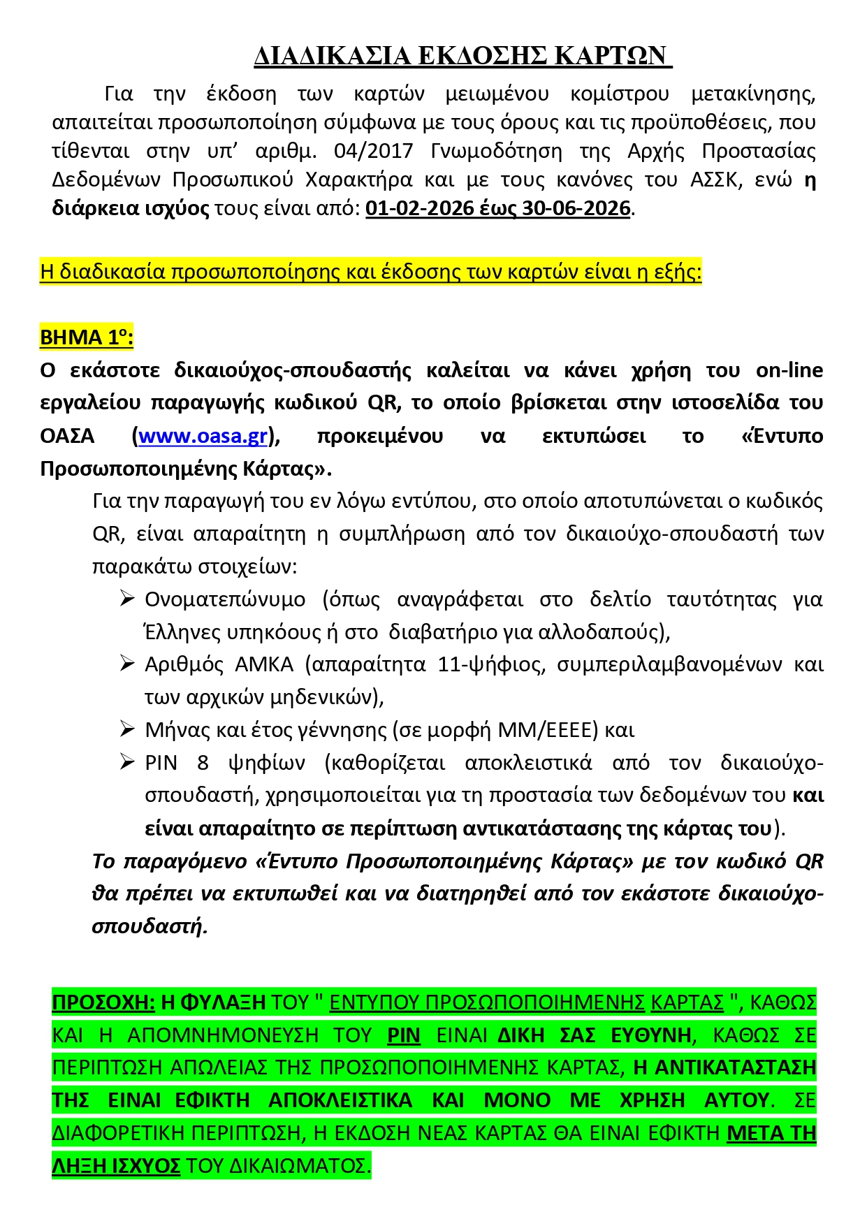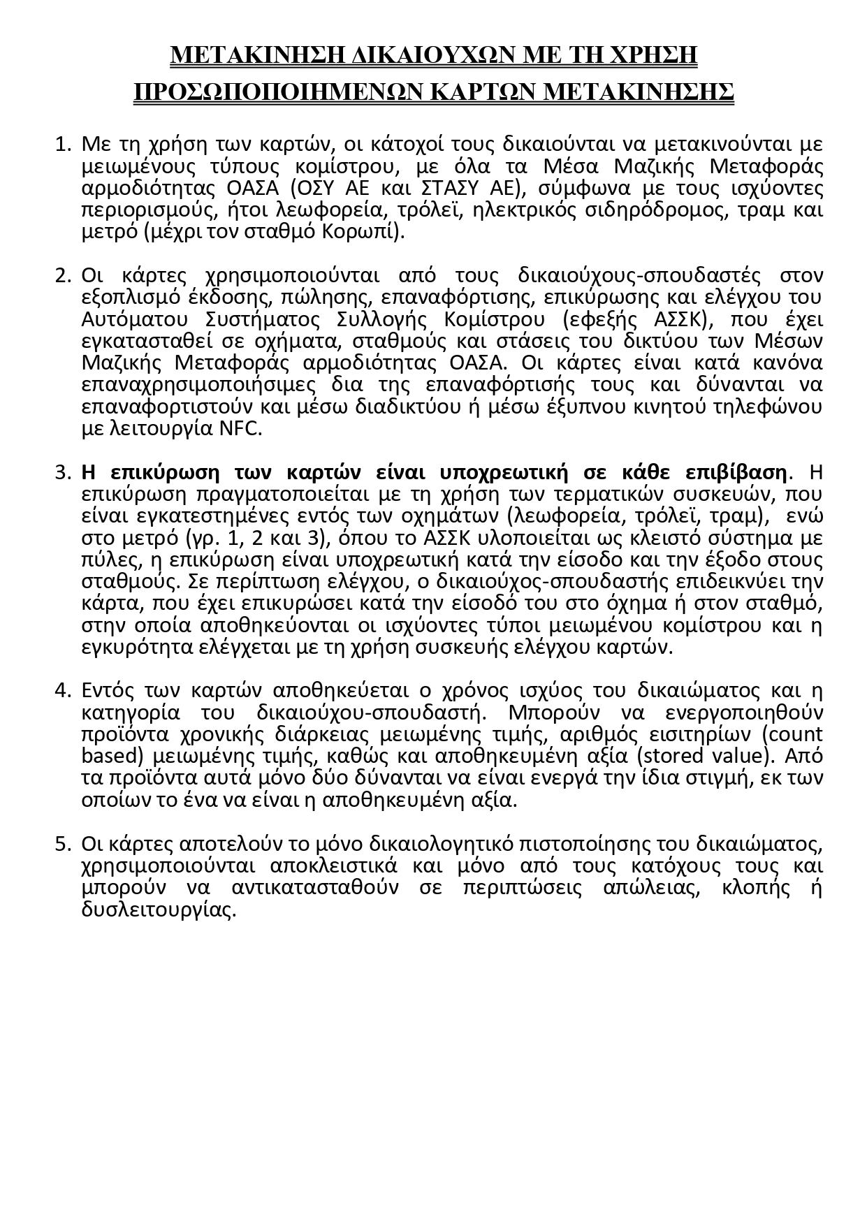 ΟΑΣΑ: ΕΚΔΟΣΗ ΗΛΕΚΤΡΟΝΙΚΗΣ ΚΑΡΤΑΣ ME ΠΑΡΟΧΗ ΔΙΚΑΙΩΜΑΤΟΣ ΜΕΤΑΚΙΝΗΣΗΣ ΜΕΙΩΜΕΝOΥ ΚΟΜΙΣΤΡΟΥ